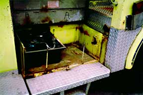IN NEED OF REPAIRS: Pictured is Bayonne Fire Department fire truck No. 1 prior to repairs at Valtek, Inc. Note corrosion from moisture and road salt.